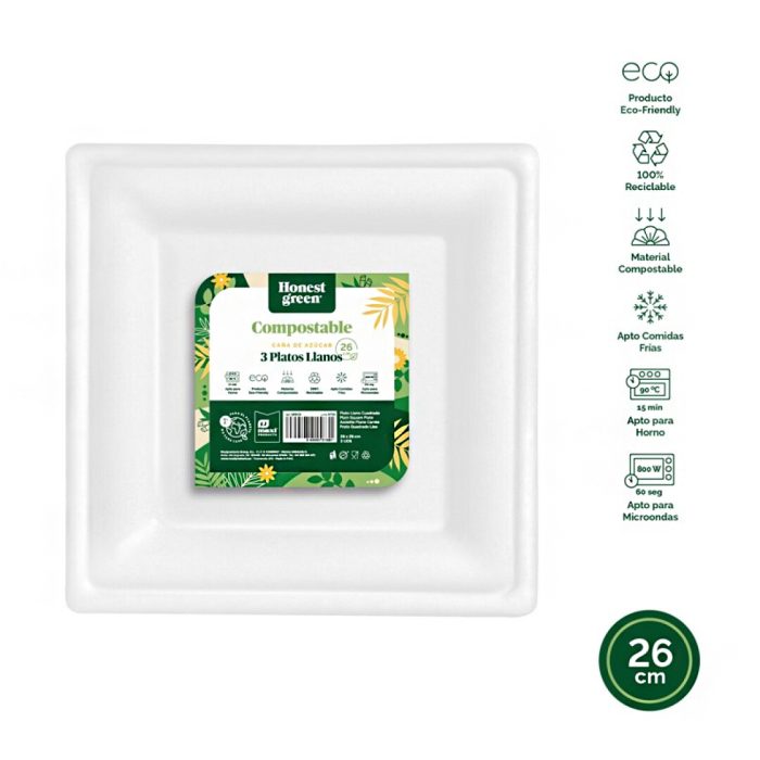 Deze composteerbare wegwerp vierkante borden zijn volledig gemaakt van suikerrietvezels. Bij het productie van rietsuiker uit de suikerrietplant blijft een restmateriaal over die bagasse heet. Bagasse bevat sterke vezels en na het vermalen tot een pulp kunnen er producten van worden gemaakt. Wegwerp servies gemaakt van suikerriet zijn niet alleen sterk, maar ook volledig composteerbaar, hitte-, vocht- en diepvriesbestendig.