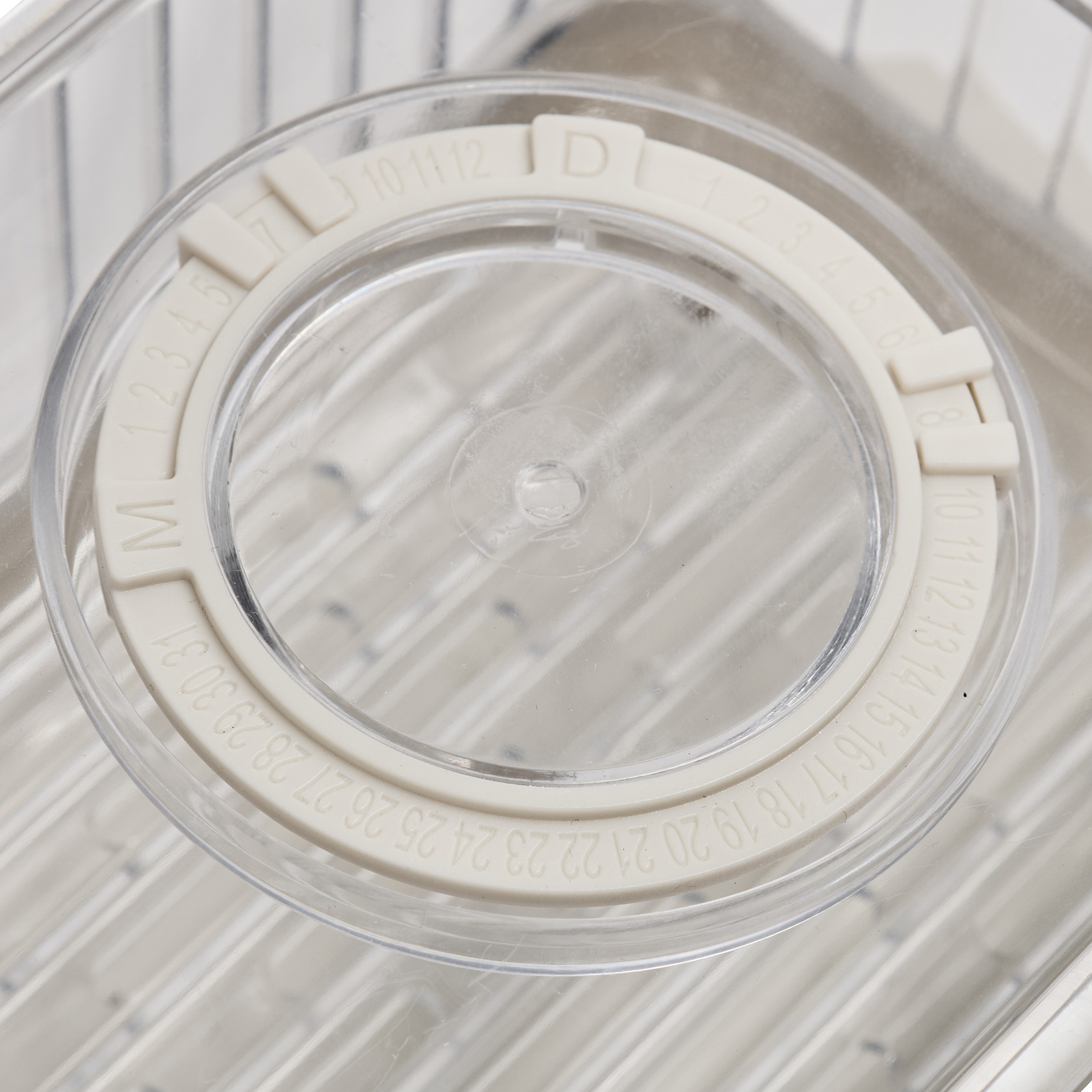 Ook is er een handige datumweergave aanwezig, zodat je de bewaar- of vervaldatum eenvoudig instelt. Daarnaast heeft de bak een verwijderbare bodem, waardoor schoonmaken en het afvoeren van vocht of resten extra makkelijk wordt.