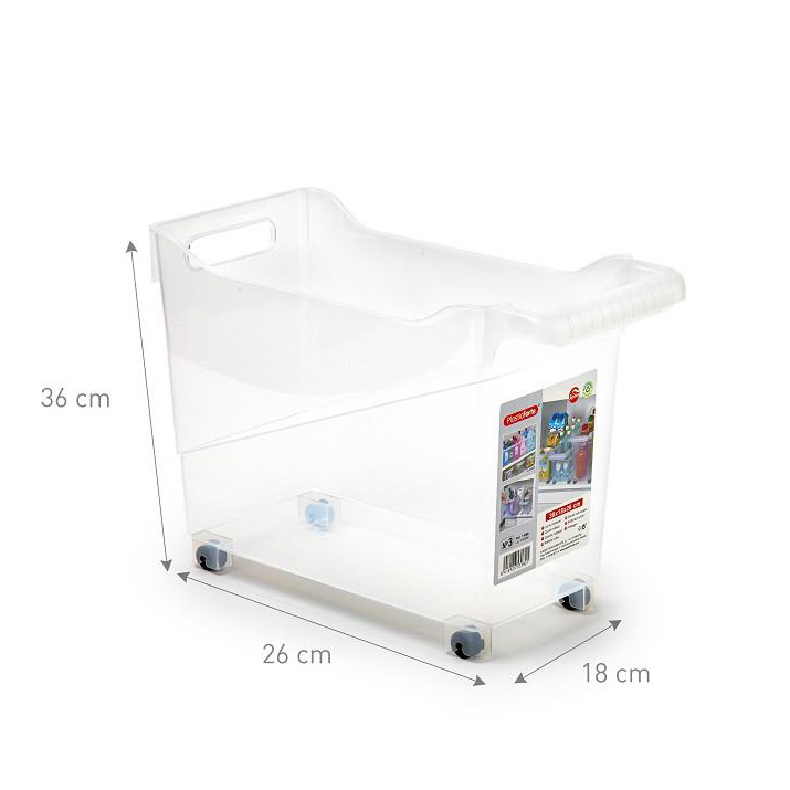 De opbergbox met wieltjes transparant 26x18x36cm is ideaal voor smalle en hoge opbergruimtes. Daardoor benut je elke centimeter optimaal. Bovendien zorgt het transparante materiaal ervoor dat je direct ziet wat erin zit. Zo houd je overzicht en werk je efficiënter in huis.