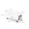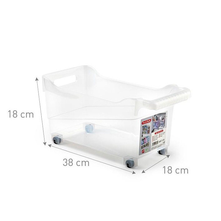 De opbergbox met wieltjes transparant 38x18x18cm is ideaal voor lage en compacte opbergruimtes. Daardoor benut je ruimte onder kasten optimaal. Bovendien zorgt het transparante ontwerp ervoor dat je direct ziet wat erin zit. Zo houd je overzicht en werk je efficiënter in huis.