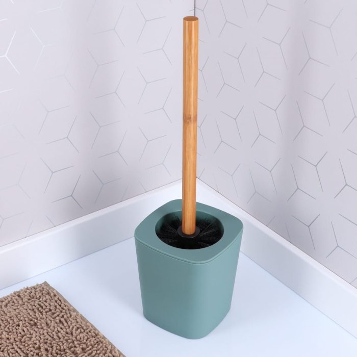 Toiletborstel met houder bamboe-kunststof salie groen-naturel