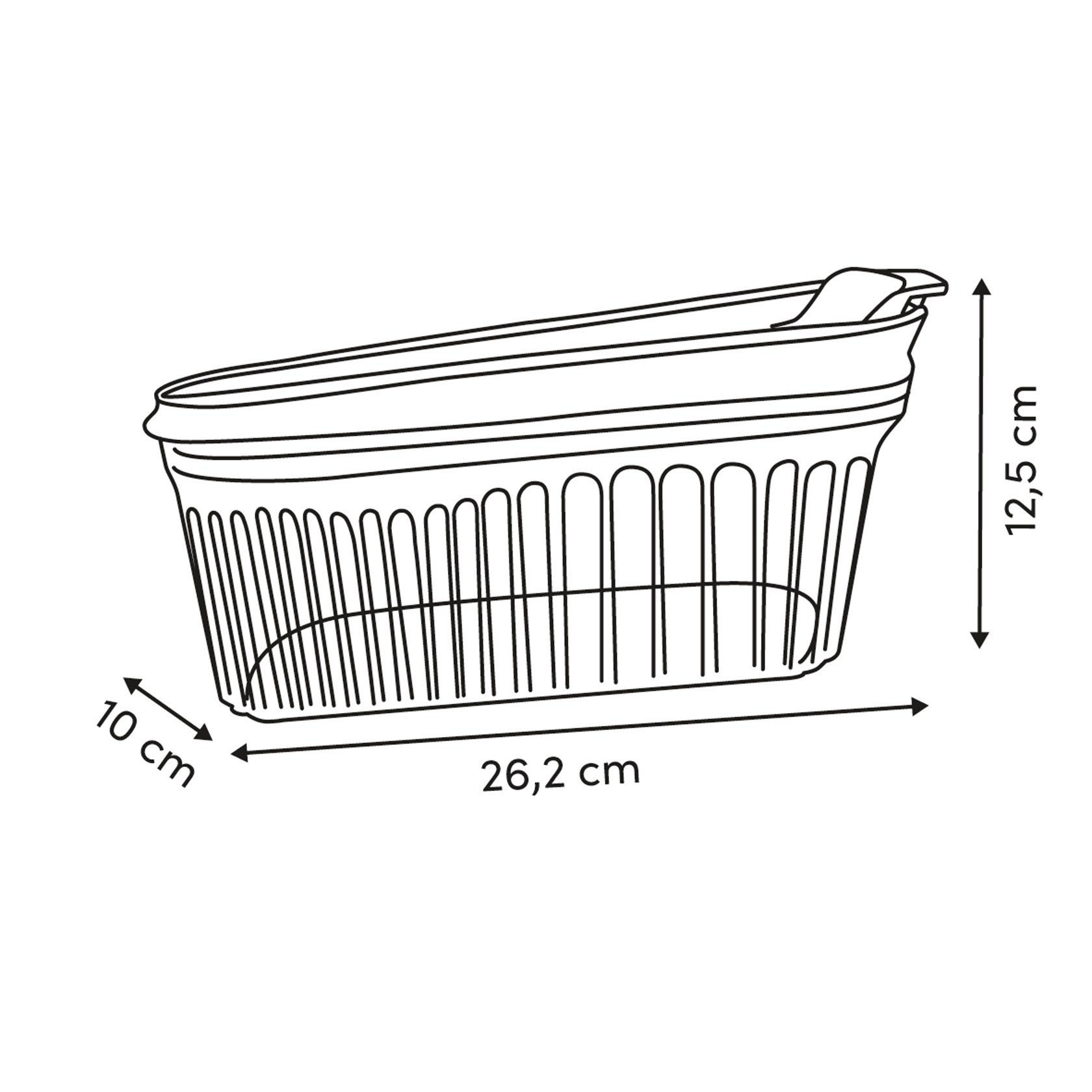 Daarnaast past deze opbergbak perfect in keukenkasten of op het aanrecht. Dankzij het transparante materiaal herken je direct de inhoud, terwijl de witte accenten zorgen voor een rustige uitstraling. Hierdoor combineer je functionaliteit met een nette en moderne look in je keuken.