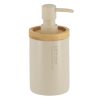 Stijlvolle beige zeepdispenser van polyresin met bamboe detail, 280ml inhoud, ideaal voor een rustige, moderne en natuurlijke badkamerstijl