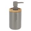 Stijlvolle grijze zeepdispenser van polyresin met bamboe detail, 280ml inhoud, ideaal voor een rustige, moderne en natuurlijke badkamerstijl