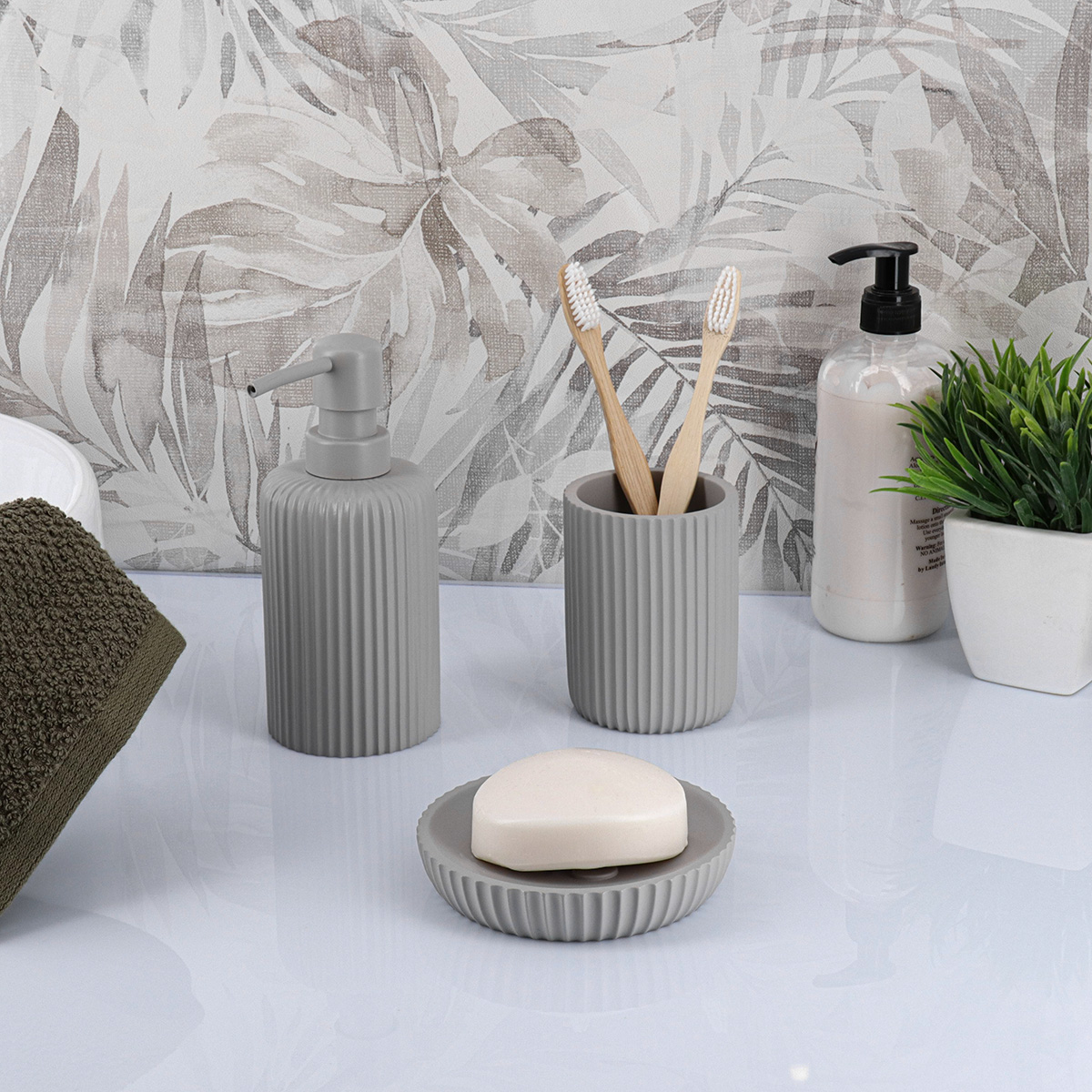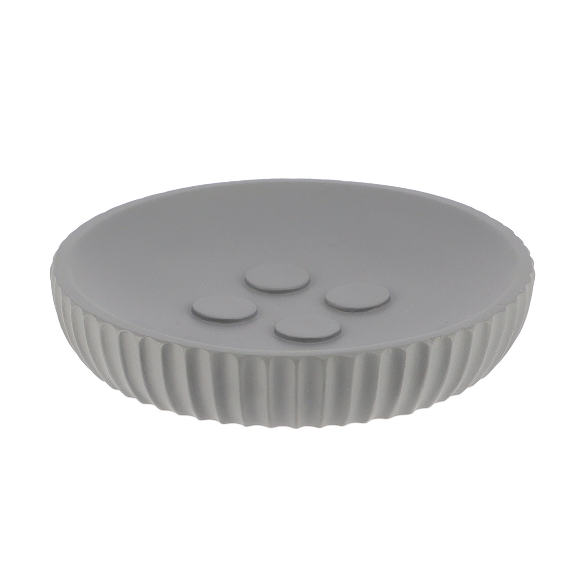 Stijlvol grijze zeepbakje met geribbelde rand en antislipnoppen. Ideaal voor een opgeruimde, moderne en hygiƫnische badkamer