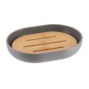 Ovale zeepbakje kunststof-bamboe grijs naturel